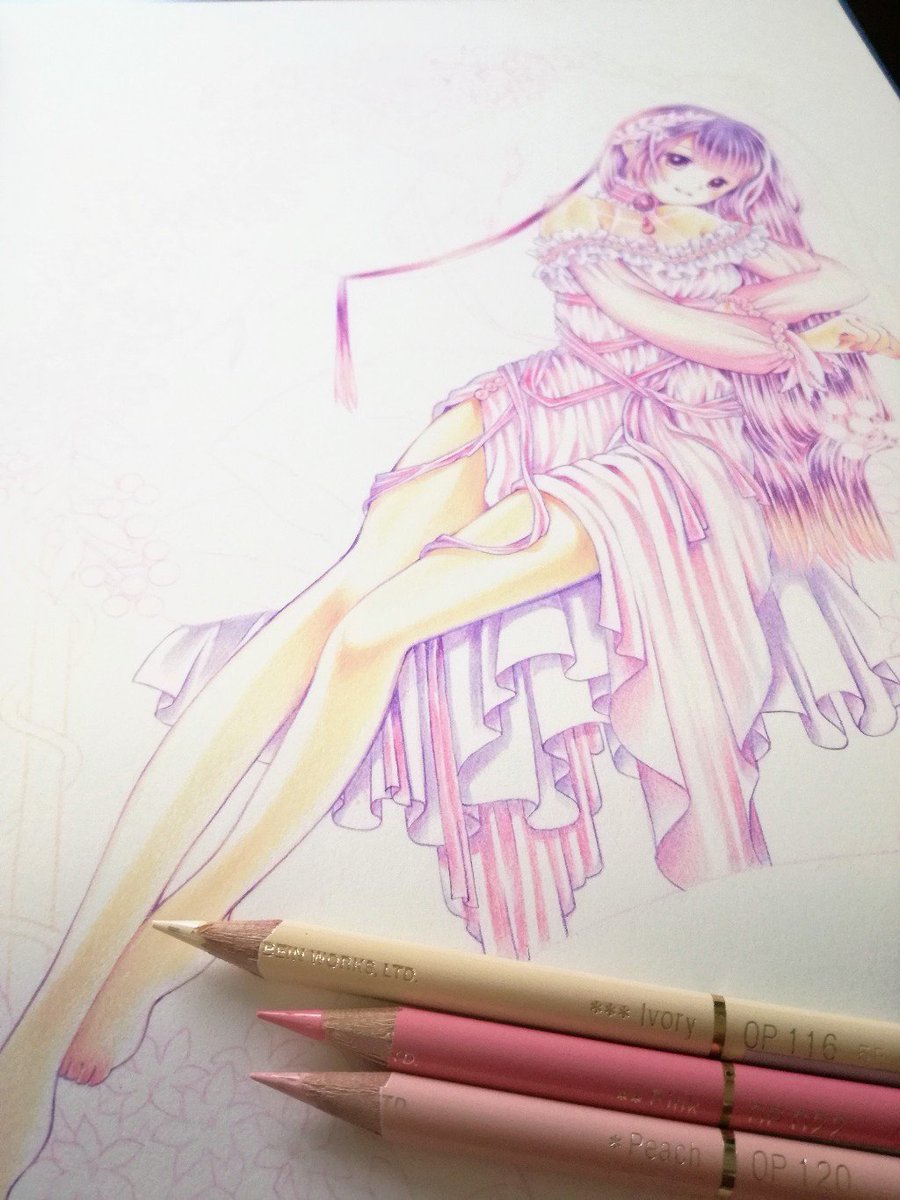 メイキング 色鉛筆で肌 色白 を塗るの巻 休日は色鉛筆